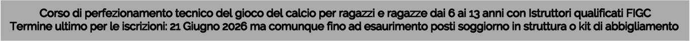 La struttura ricettiva è situata a 100 mt dal campo (raggiungibile pertanto a piedi) ed è di alta qualità in ambiente riservato e collaudato per squadre di calcio.